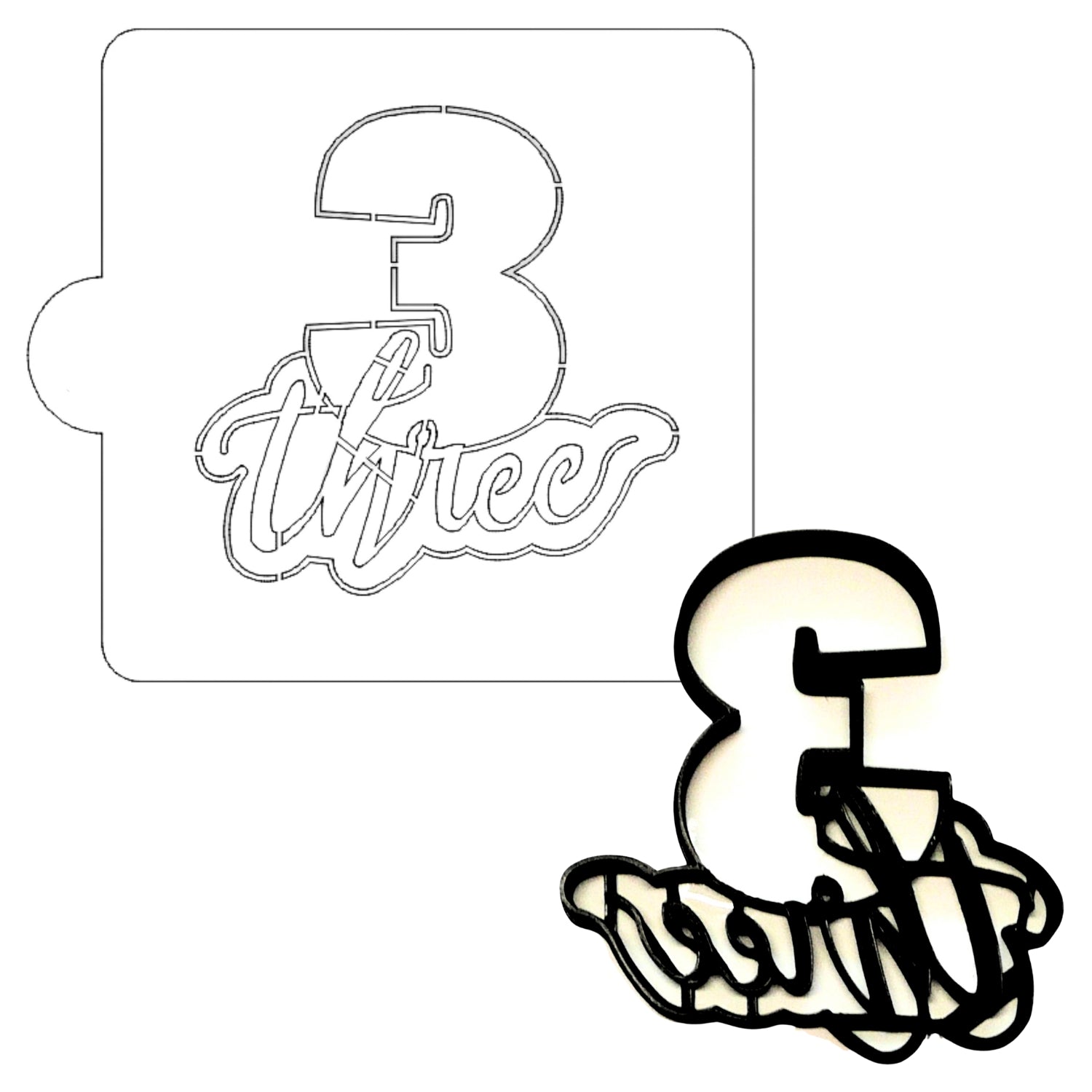 Number 3 Word Detailed Stencil And Cookie Cutter Set USA Made LSC2404