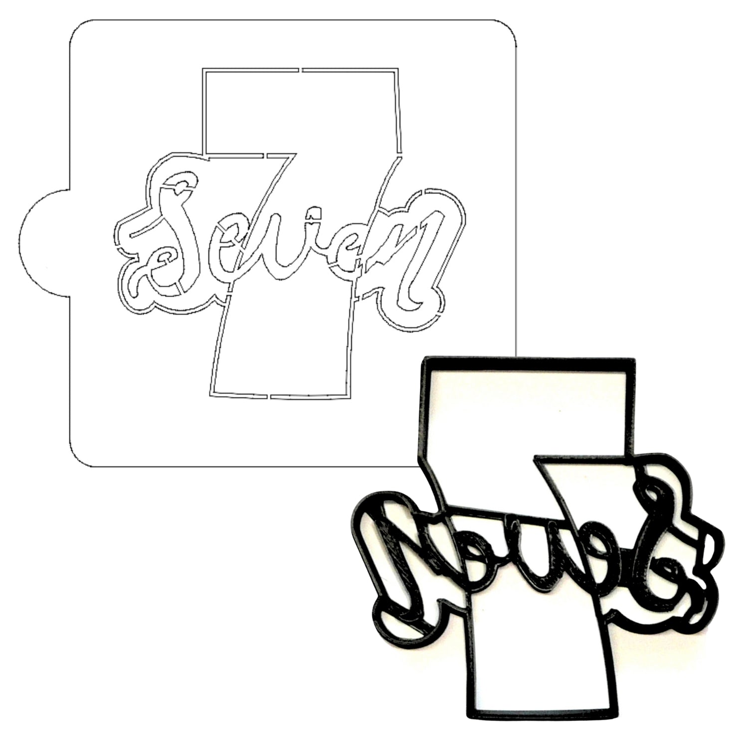 Number 7 Word Detailed Stencil And Cookie Cutter Set USA Made LSC2408